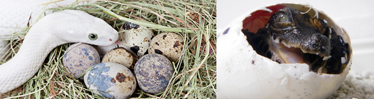A principal inovação evolutiva que os permitiu conquistar definitivamente o ambiente de terra firme foi seu tipo de ovo, denominado ovo amniótico. Os ovos dos répteis são protegidos por uma casca membranosa ou calcária, e seus embriões desenvolvem estruturas extra-embrionárias (saco vitelínico, âmnio e alantóide), que permitem seu desenvolvimento fora da área.