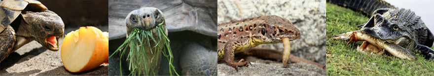 Os répteis são em geral predadores, alimentando-se de insetos, aves e peixes, mas há representantes herbívoros como tartarugas e lagartos.