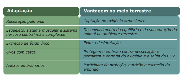 Como vimos anteriormente, a característica pele grossa, recoberta por muitas escamas ou placas que evitam a perda excessiva de água, foi uma adaptação para para sobrevivência dos répteis no ambiente terrestre. Outras características confirmam esta adaptação. Confira: