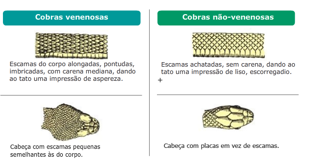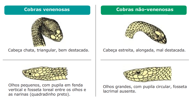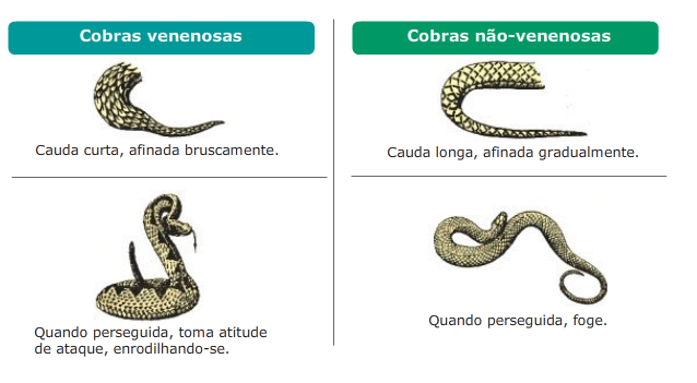 Cobras venenosas e não venenosas