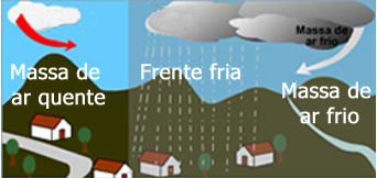 Quando uma massa de ar frio encontra-se com uma massa de ar quente, ocorrem a condensação e a precipitação. Esse tipo de chuva geralmente ocorre após um dia muito abafado, quente e sem ventos, porque a massa de ar frio está pressionando a massa de ar quente que se encontra sobre a região. Por isso é chamada de frente fria.