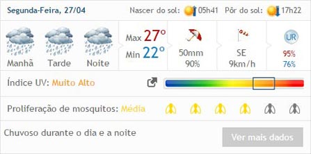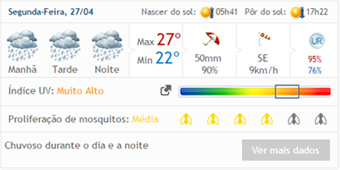 O painel informa como ficarão a temperatura, umidade e vento no dia pesquisado.