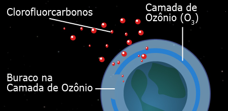 é o uso do clorofluorcarbono, o CFC. Esses compostos são empregados em