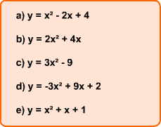 1) Abaixo apresentamos algumas funções quadráticas. Calcule as coordenadas dos vértices de cada uma delas em seu caderno. Depois, confira suas respostas usando o nosso Gerador de Gráfico da Função Quadrática.