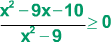 OBS: você deve fazer o estudo de sinal das funções f(x) = x2 - 9x - 10 e g(x) = x2 - 9 para montar em seguida o "Quadro de Sinais", do mesmo modo que fez no Estudo de Função Afim. Você pode conferir se seu estudo de sinal está correto usando nosso Gerador de Gráfico, ok?