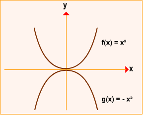 Com o auxílio do "Gerador de Gráfico da Função Quadrática" construímos os gráficos das funções f(x) = x2 e g(x) = - x2.