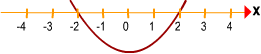 Vemos que a parábola está acima do eixo das abscissas para valores de x menores que -2 ou para valores maiores que 2. E que está abaixo do eixo para valores de x entre -2 e 2.