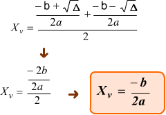 Como uma reta paralela ao eixo y que passe pelo vértice será um eixo de simetria da parábola, podemos concluir que a abscissa do vértice será a média aritmética das duas raízes. Indicando essa abscissa por xv, temos:
